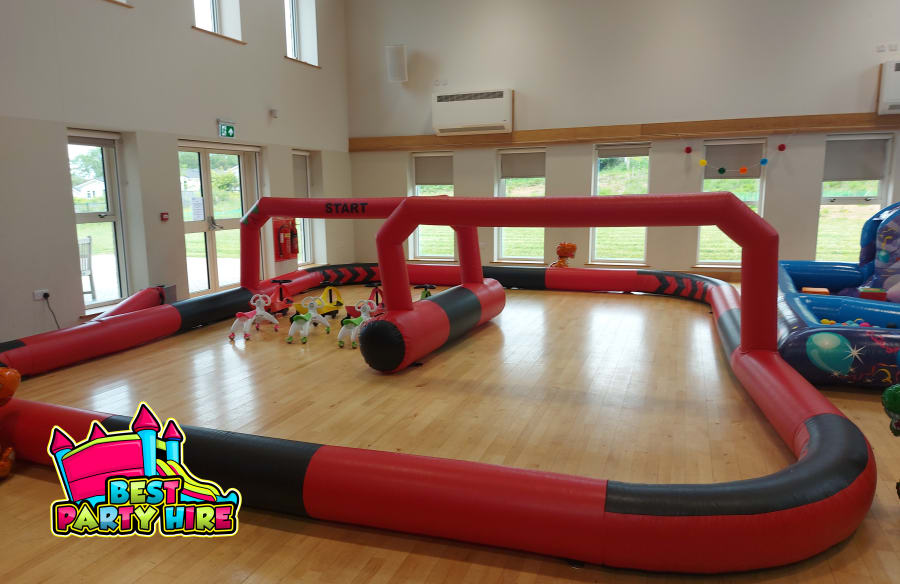 This inflatable circuit creates a safe, exciting track for ride-ons, scooters, space hoppers or pedal cars (not included). It’s brilliant for birthday parties, school fun days, fetes and themed events — especially when paired with your own or hired ride-ons.