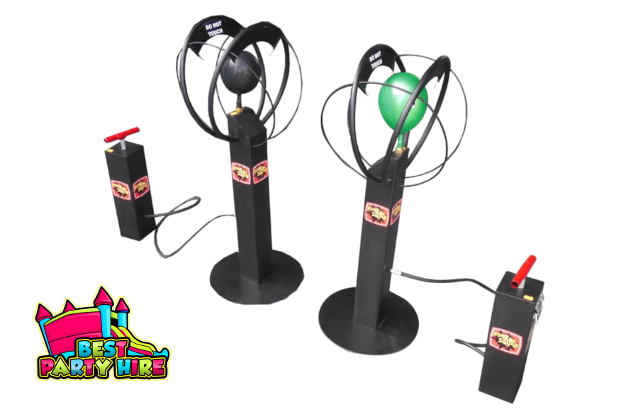 Two players go head-to-head using pump blasters to inflate their balloons as fast as possible…