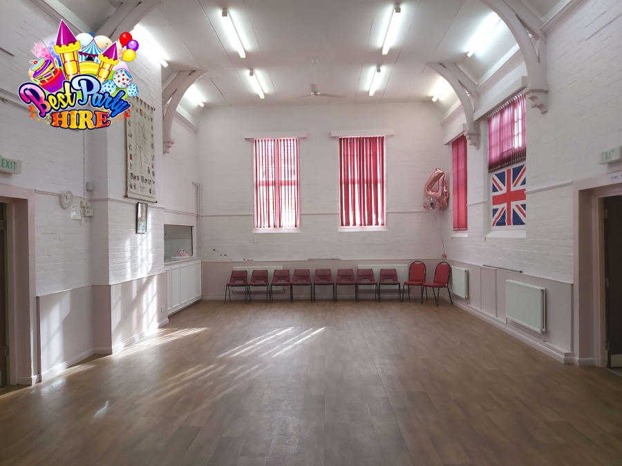 The hall is nice and spacious, along with a stage. However only our low height bouncy castles and any soft play would fit in here.