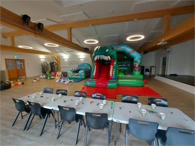 The village itself has a lovely community feel, and when we arrived to set up the Ultimate Dino Package, the hall quickly became a mini dino adventure park!