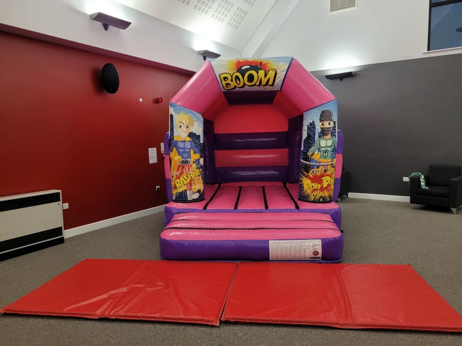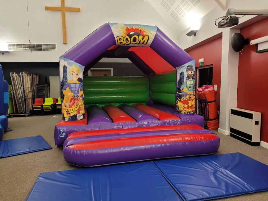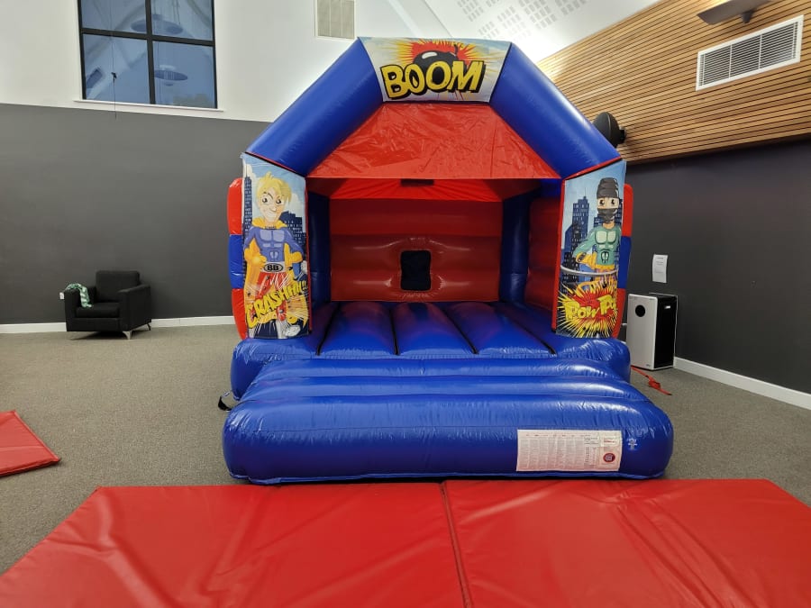 Your choice of bouncy castle size with Superhero artwork