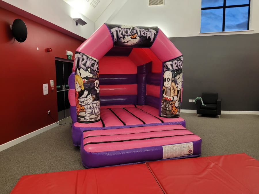 Whether you’re planning a school disco, community Halloween event, or a spooky garden party in Leamington Spa or Warwick, our Halloween artwork can be added to any of our 5 bouncy castle sizes – including our disco castle with lights and music for extra glow and giggles!
